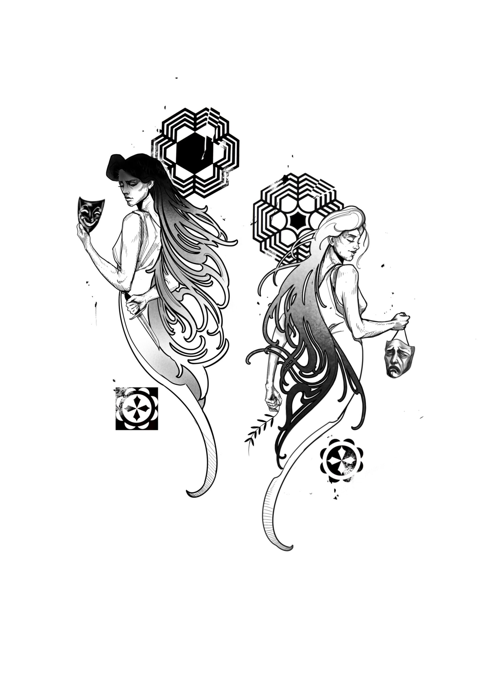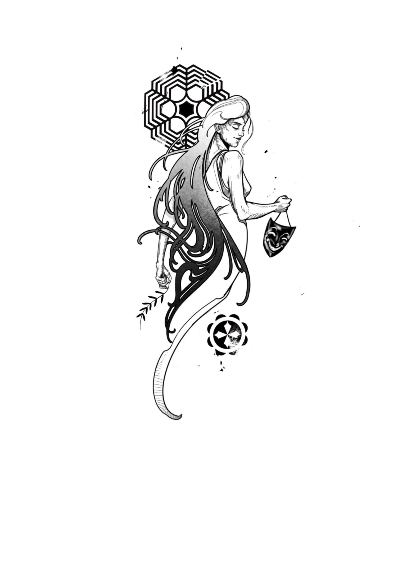 Melpomene, the Muse of Tragedy, walks with quiet gravity. Twin to Thalia-Muse of Comedy-she completes the theatrical duality of human emotion. Where her sister wears a smile, Melpomene carries the mask of sorrow, revealing the catharsis that comes through grief, loss, and raw vulnerability. She does not dramatize for spectacle, but instead teaches us to honor the weight of sadness, to embrace the beauty that lives inside pain. In her presence, we are reminded that tears, like laughter, are sacred.